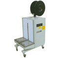 該打包機工作原理:打包物體基本處理機器中間,首先右頂體上升,壓緊帶的前端,把帶子收緊捆在物體上,隨后左頂體上升,壓緊下層帶子的適當位置,加熱片伸進兩帶子中間,中頂刀上升,切斷帶子,較后把下一下捆扎帶子送到位,完成一個工作循環。